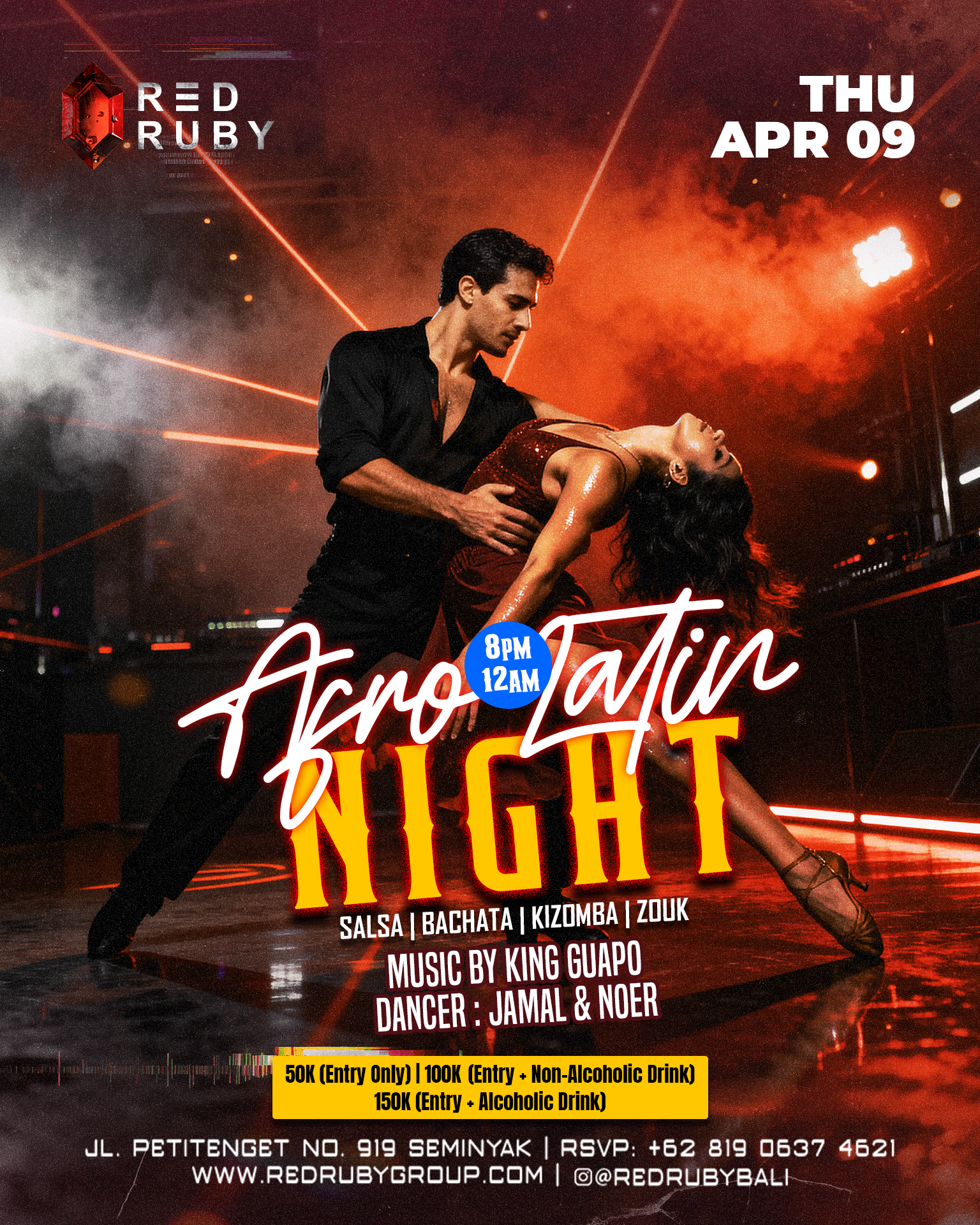 ๐๐๐ซ๐จ ๐๐๐ญ๐ข๐ง ๐๐ข๐ ๐ก๐ญ at Red Ruby, a night of passion and rhythm. From smooth bachata to energetic salsa and sensual kizomba, every beat pulls you onto the dancefloorโจ