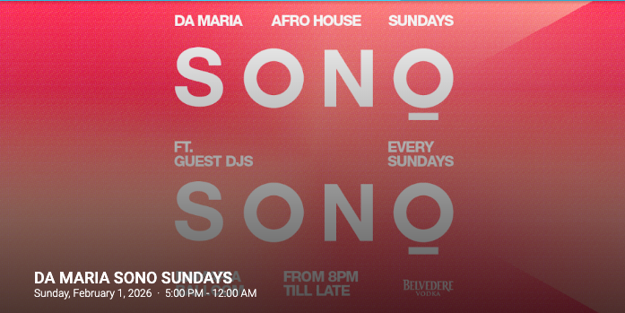 SONO means “I am” in Italian. A simple phrase, but also a statement: presence, identity, expression. Every Sunday, Da Maria shifts from long-table dining into a dancefloor pulsing with Afro House, immersive, soulful, alive.