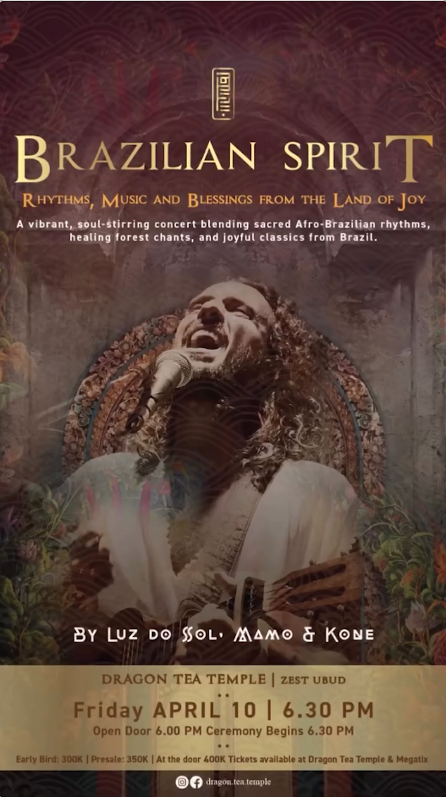 A vibrant, soul-stirring concert blending sacred Afro-Brazilian rhythms, healing forest chants, and joyful classics from Brazil.