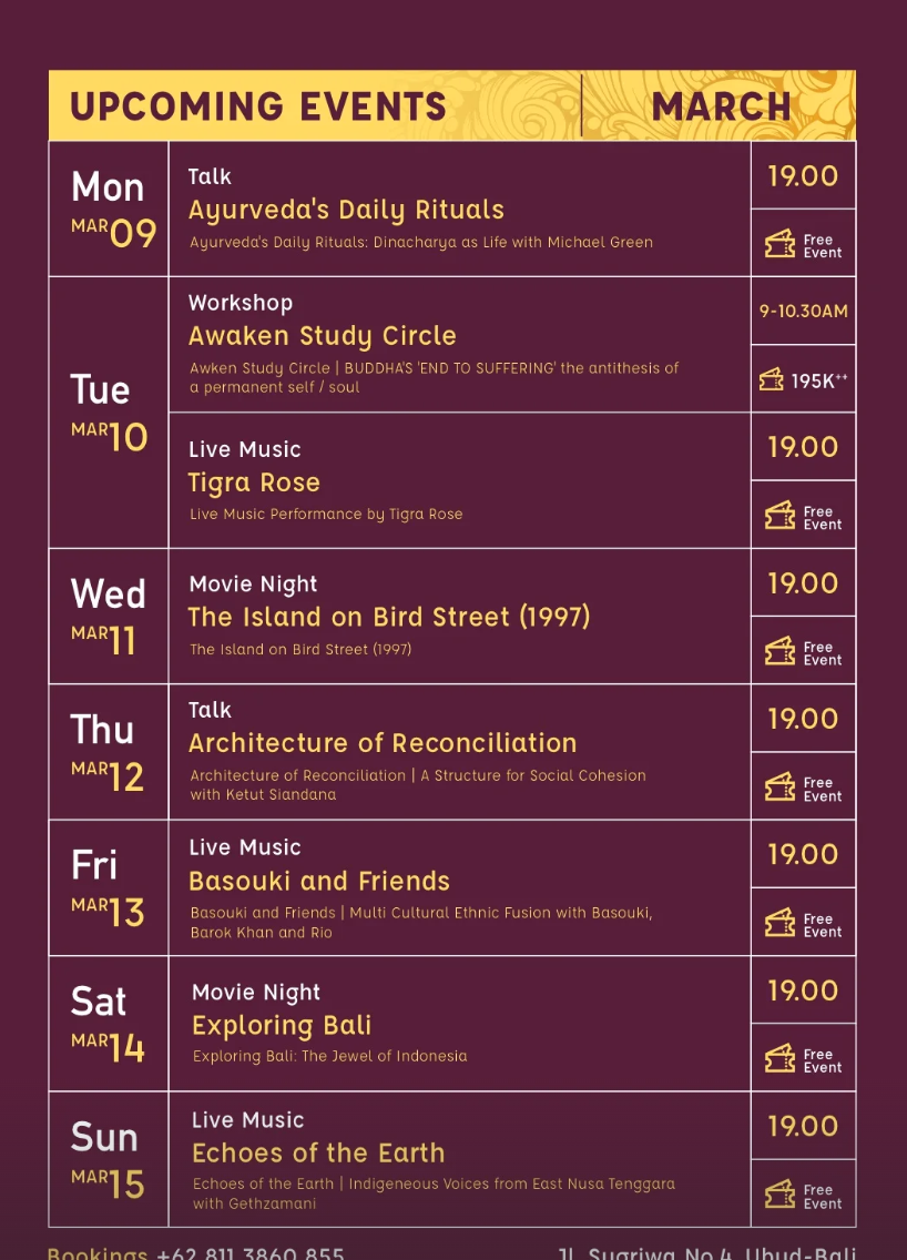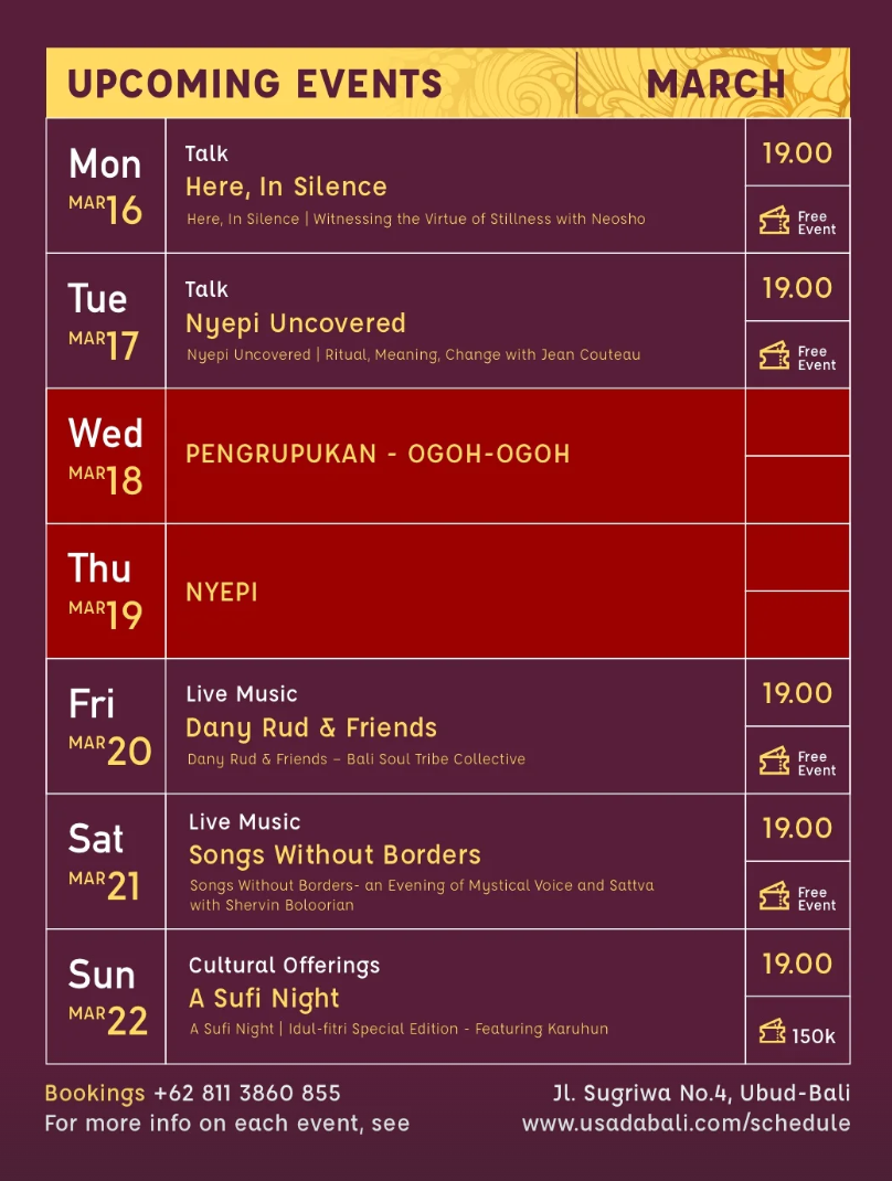 Event Schedule at Usada