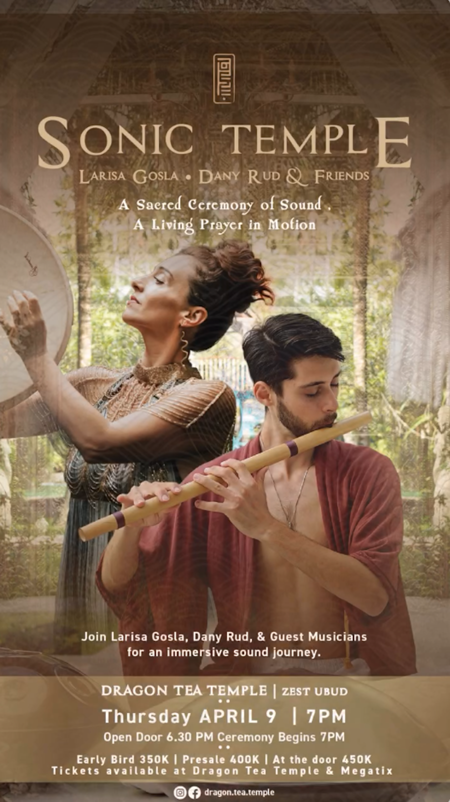 A dynamic fusion of handpan, flute, frame drum, guitar, evocative vocals, and immersive electronic beats, you’ll be guided into the vast landscapes of your inner world through an expression of a continuous stream of sound- a living prayer in motion.