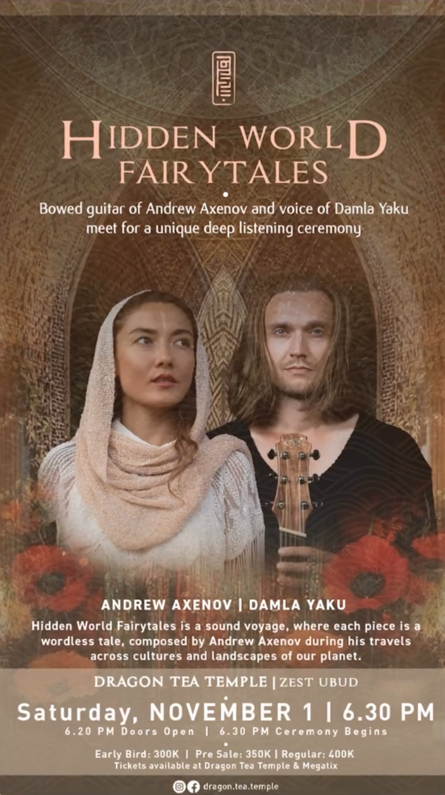 This night at Dragon Tea Temple will be special, as Andrew will be joined by enchanting Damla Yaku, whose voice will bring new colors to the music and open fresh paths in the journey.