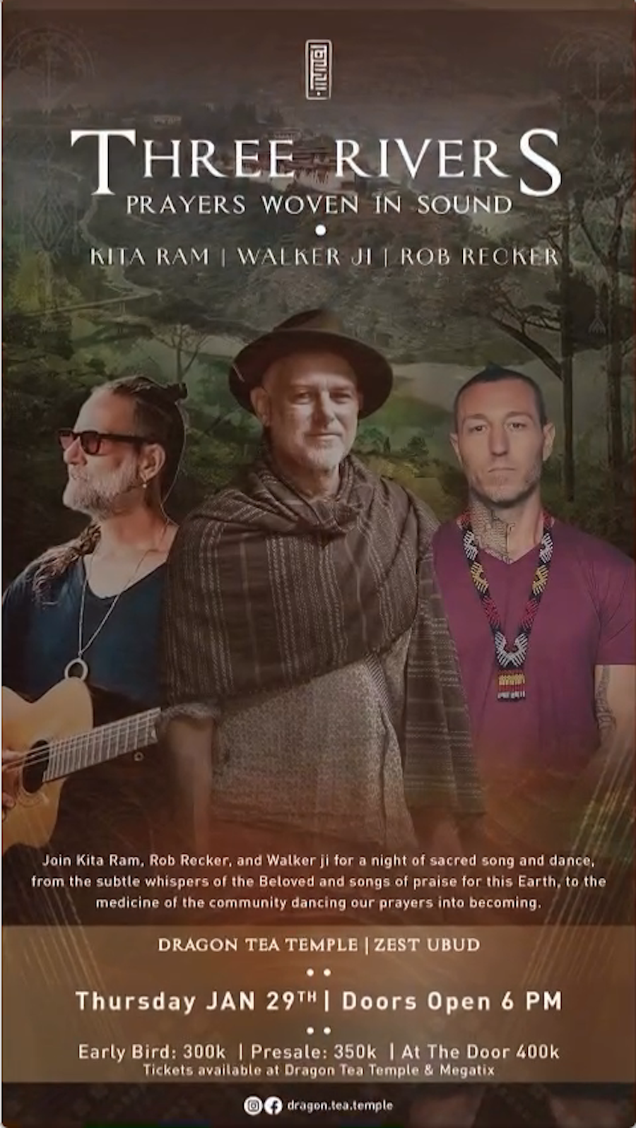 Join Kita Ram, Rob Recker, and Walker ji for a night of sacred song and dance, from the subtle whispers of the Beloved and songs of praise for this Earth, to the medicine of the community dancing our prayers into becoming.