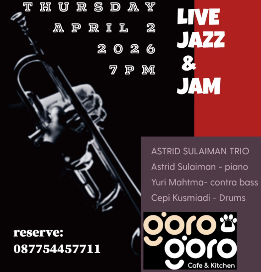 THURSDAY JAZZ and JAM SESSION in Bali 2 APR 2026 See you at the coolest Jazz spot in Bali 📍Goro Goro Cafe & Kitchen Jl Bypass Ngurah Rai Sanur No 157 Book your table 087754457711 7pm