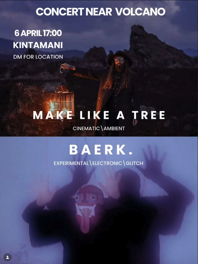 Welcome to our secret concert in Bali. It will happen on 6th of April from 17:00 on the lava field in Kintamani. We will have a live performance by Berlin based experimental electronic musician @baerk______ and ambient live set by @makelikeatree_official