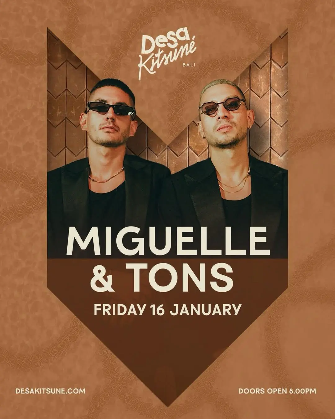 Duo Migulle & Tons bring an electrifying fusion of Afro-house rhythms and underground beats. Their dynamic performances combine melodic grooves, tribal percussion and dancefloor intensity, earning them acclaim across international circuits.