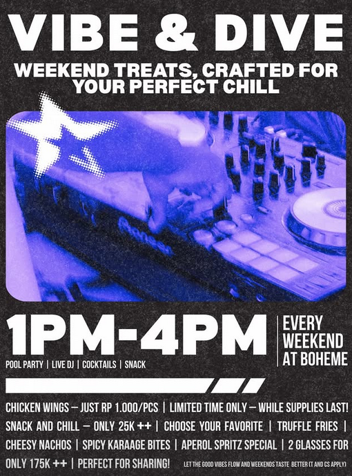 Weekends made to linger. Poolside moments, easy snacks, drinks meant to be shared. Vibe & Dive at Boheme.