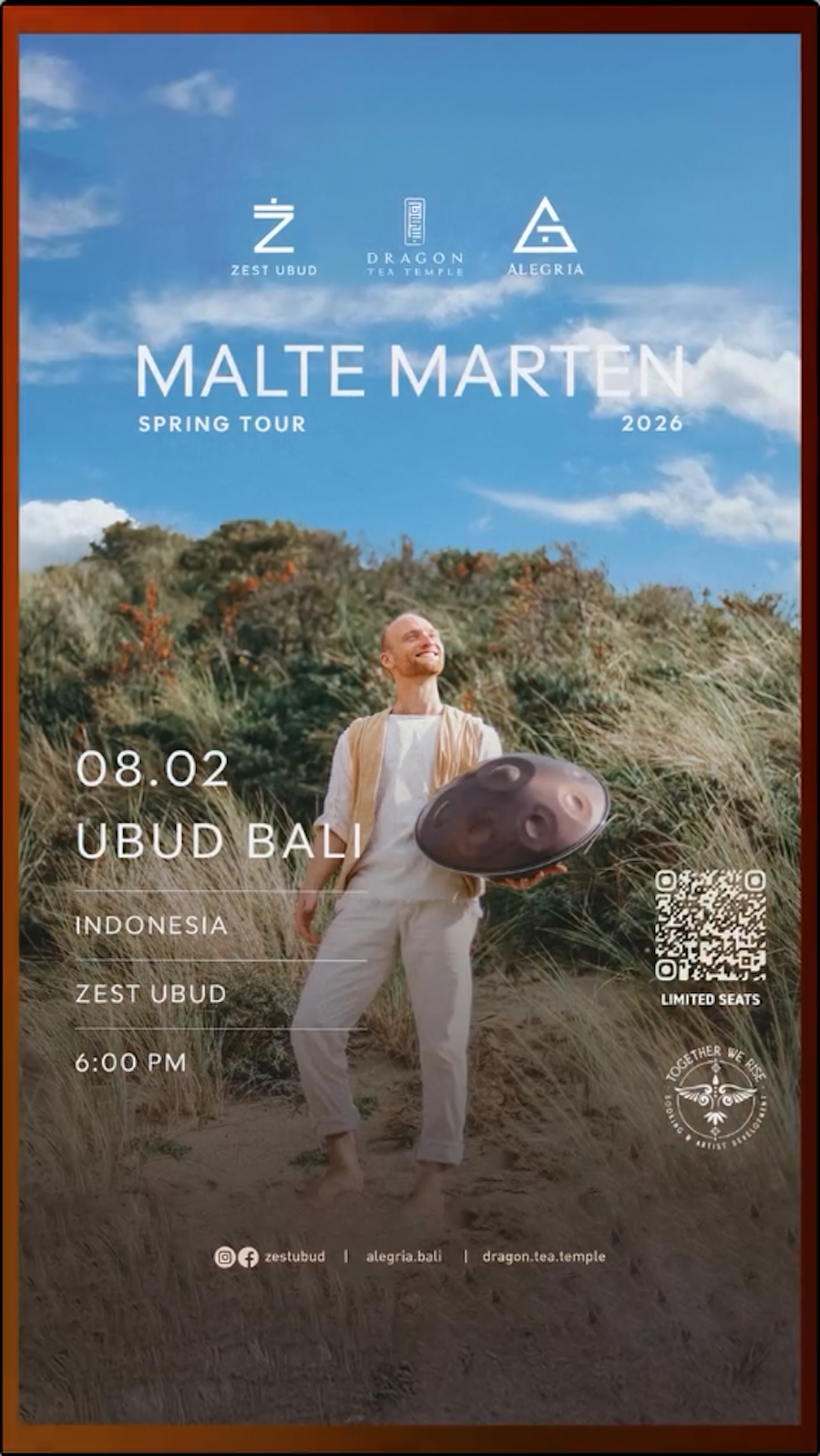 Join us for Harmony in Stillness, a soulful handpan journey where music becomes meditation, led by one of Europeโs most celebrated handpan artists, Malte Marten.