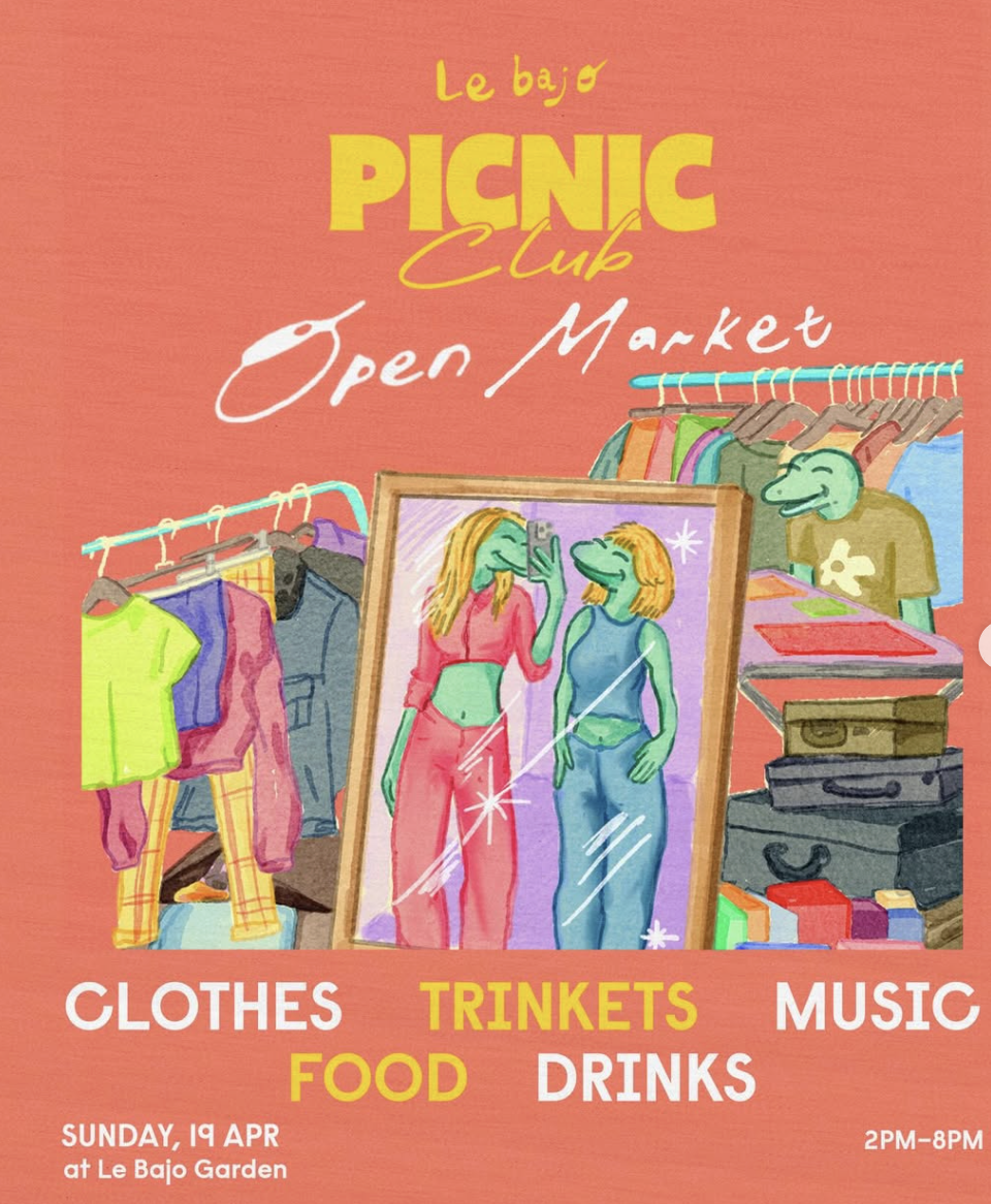 Join us for Picnic Club Open Market at Le Bajo, where you’ll find curated vintage, clothes for the little ones, handmade jewellery, trinkets, riso prints, and even a tarot booth to peek into your future 👕🩳