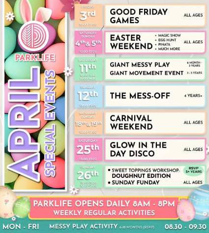 Our April Special Event Schedule is officially live β packed with Easter magic, messy play, creative workshops, high-energy fun and family moments you wonβt want to miss