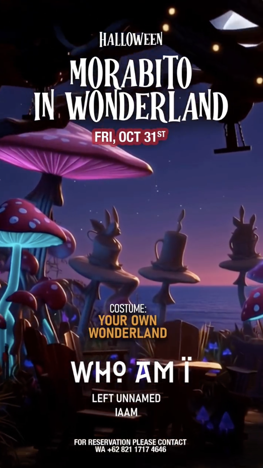 Only the bold make it past the gates. This Halloween, fall down the rabbit hole into Morabito’s Wonderland. Featuring WHO AM I — DJ, label owner of MAISON des APRÈS, and creative alchemist.