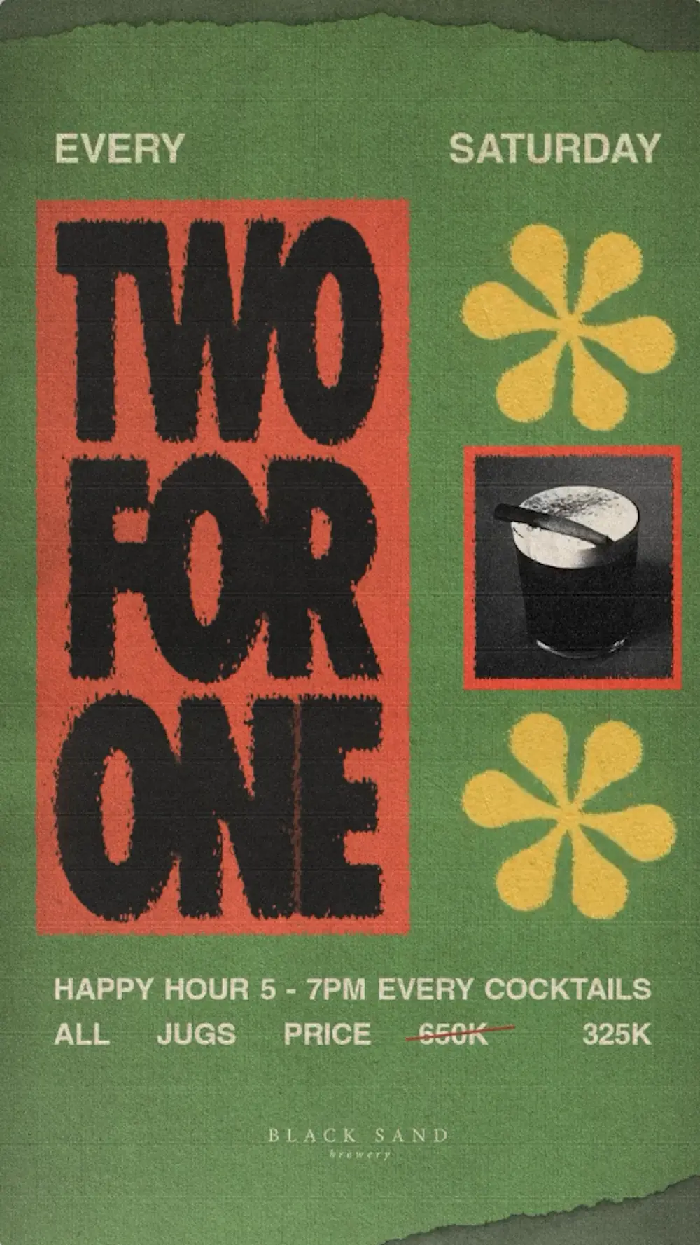 2-4-1 Cocktails at Black Sand Brewery Saturday Happy Hours 5-7pm