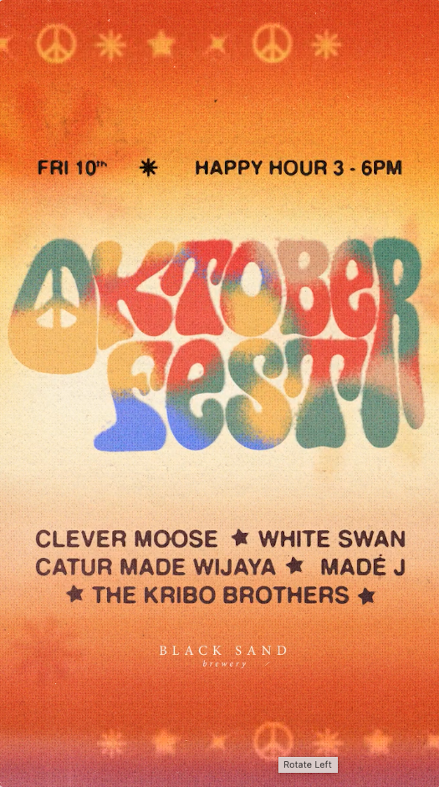 Peace, love, and pints. Oktoberfest at Black Sand is back with a bang, and we’re rolling it back to the golden days. With live music from Clever Moose, White Swan, Catur Made Wijaya, Madé J, and The Kribo Brothers, this Oktoberfest will go down in history.