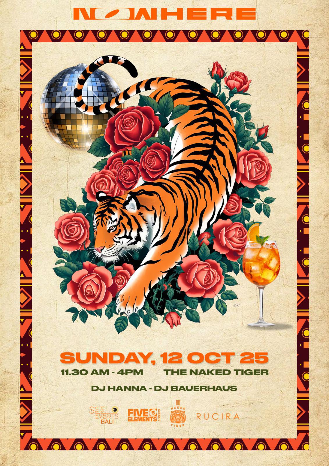 This specific Sunday, NOWHERE takes over The Naked Tiger for a daytime affair where sun-drenched beats meet untamed energy. With DJ Hanna and DJ Bauerhaus on deck, expect nothing less than pure groove from noon until sunset.