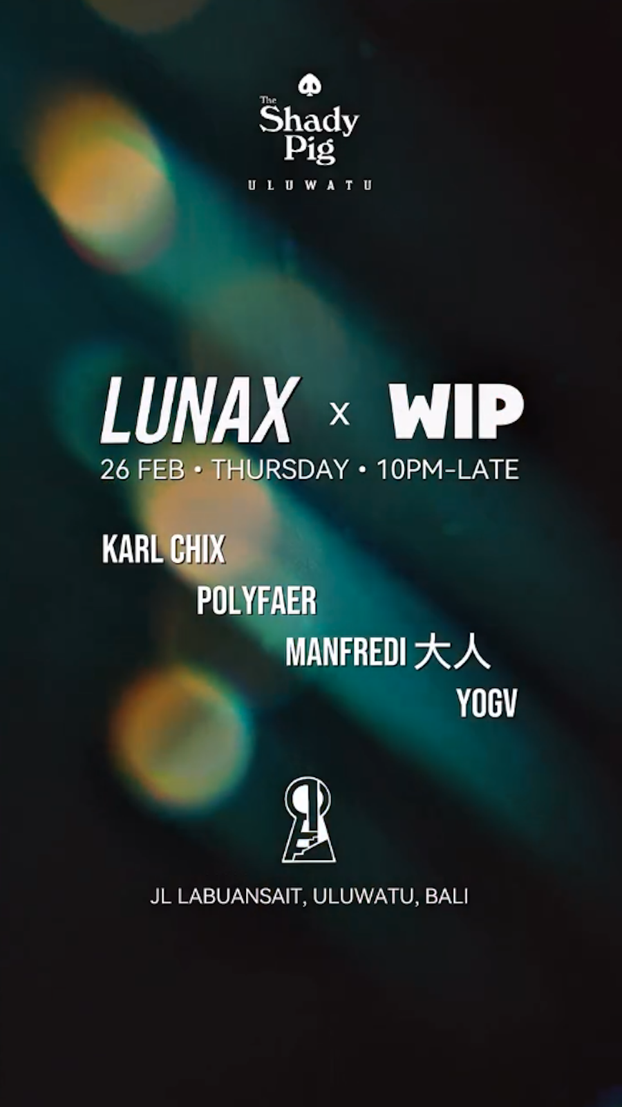 @theshadypiguluwatu . We’re coming together for a proper late-night session in Uluwatu — deep, groovy and built to go long! Line-up: