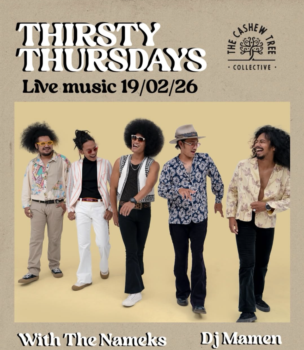 THIRSTY THURSDAYS LIVE MUSIC 🥁 this week on the cashew tree stage @the.nameks 🎙️