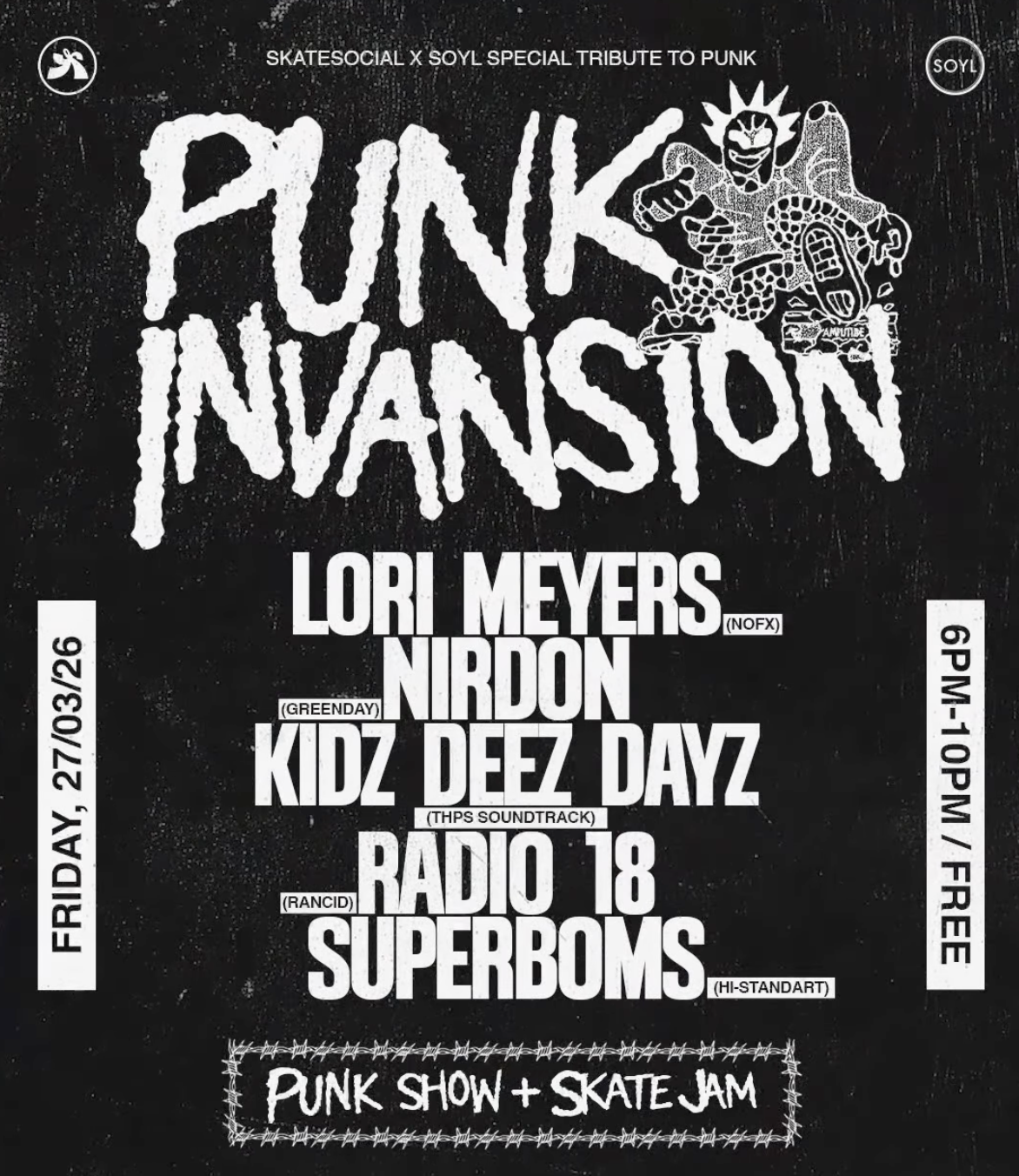 An evening celebrating the music that defined our youth, from NOFX, Rancid, and Green Day to the iconic Tony Hawk Pro Skater era.