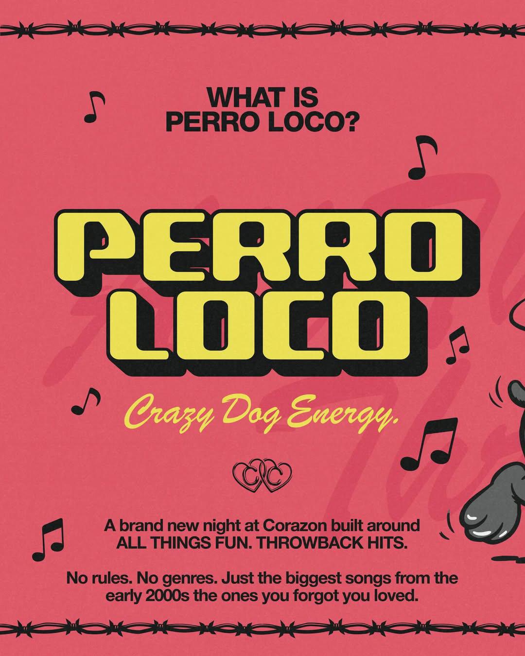 Something was missing… so we made it. PERRO LOCO is your midweek escape — early 2000s anthems and guilty pleasures, where all genres meet, all fun is guaranteed, and pressure doesn’t exist.