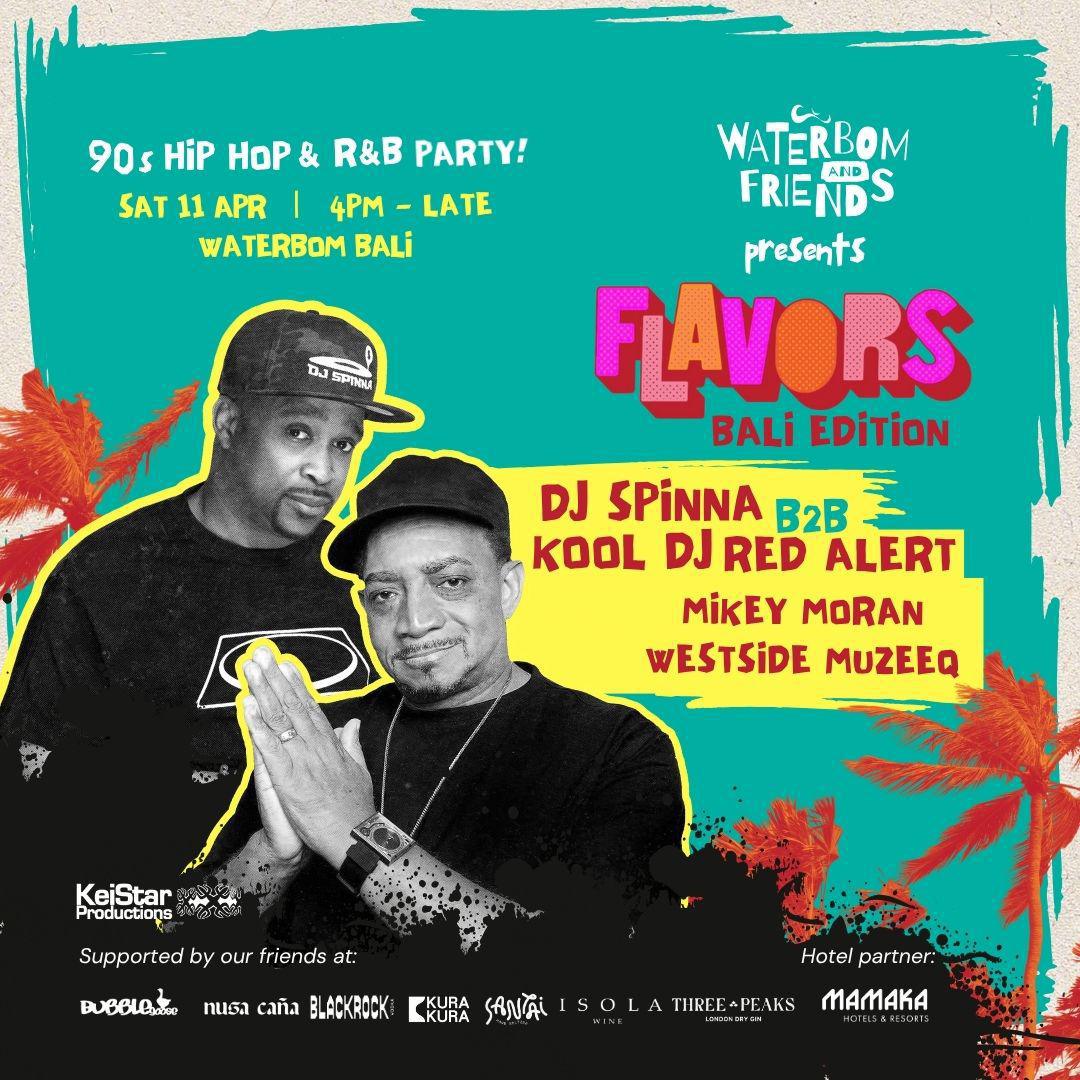 Waterbom & Friends returns on Saturday 11 April with a special 'Flavors Bali Edition' - kicking it old school with masters of the craft, DJ Spinna and Kool DJ Red Alert, joining us from the USA!