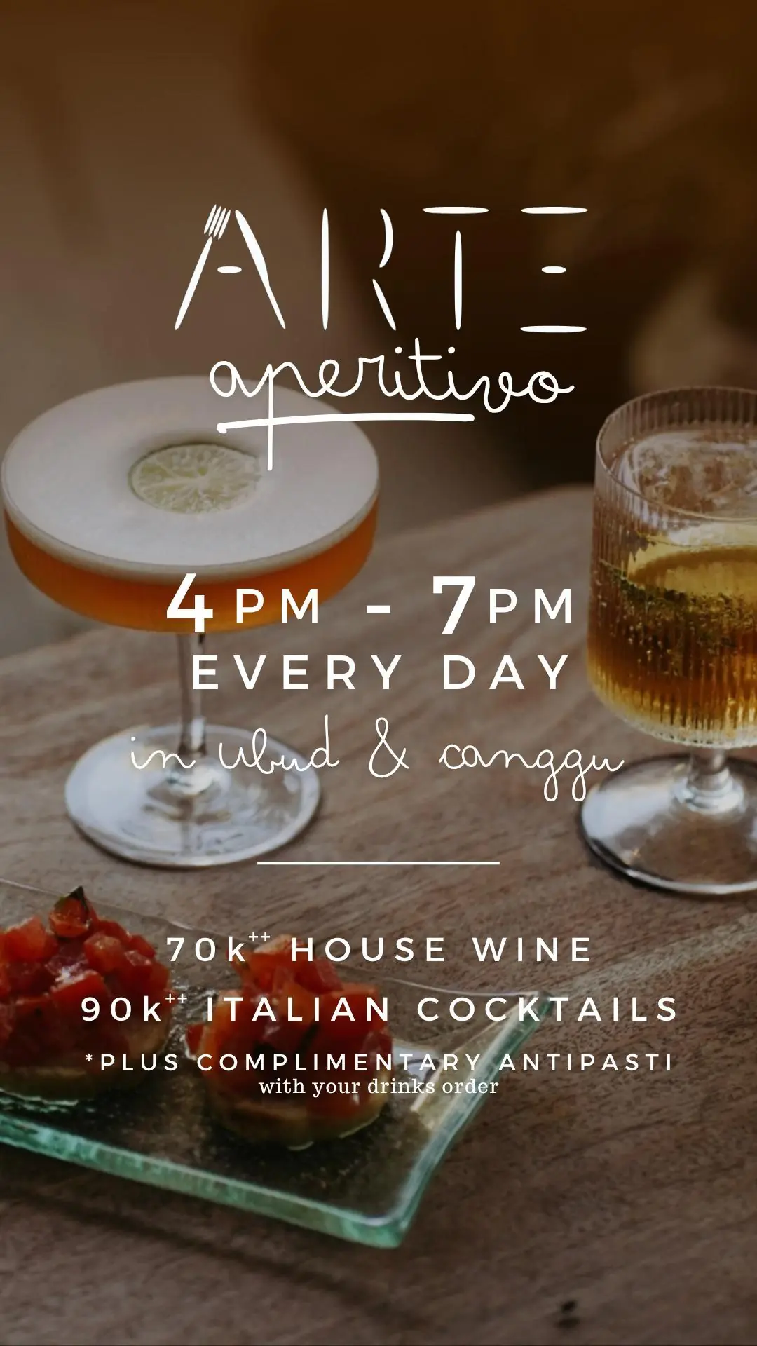 Arte Aperitivo Happy Hour at ARTE Ubud, everyday 4-7pm
