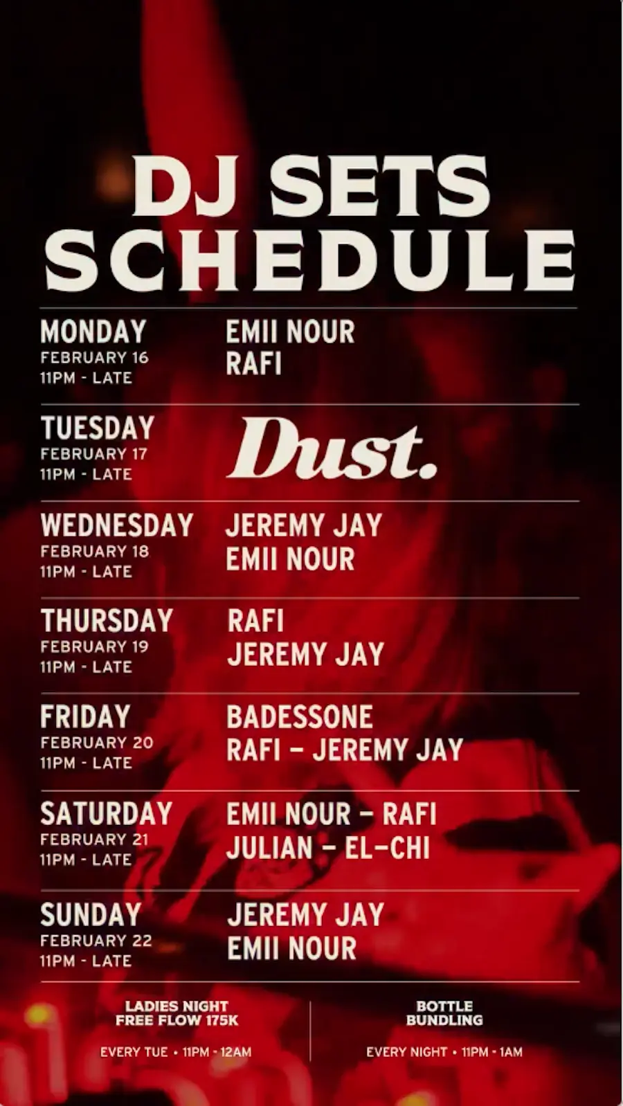 Midweek unfolds with Katya Livingston, joined by Brodie Nero and Valentina for a night of refined sound and flowing energy.