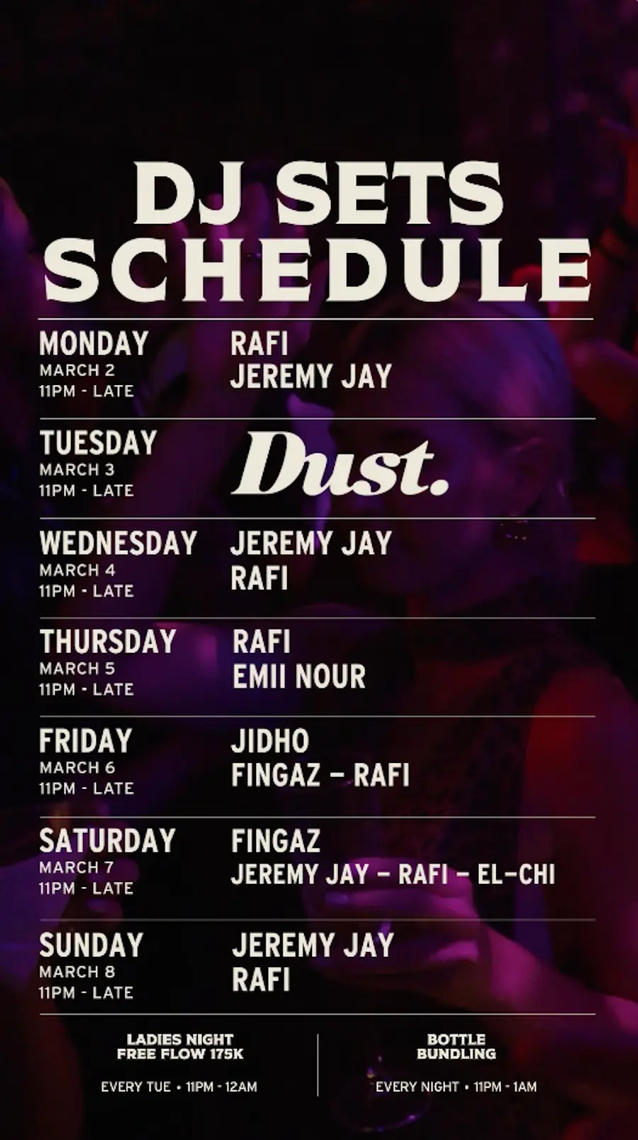 International Series takes over Wednesday night with a curated night of global sound and elevated rhythm. Featuring Demaya, Miira, Valentina, and Brodie Nero for an elevated midweek escape.