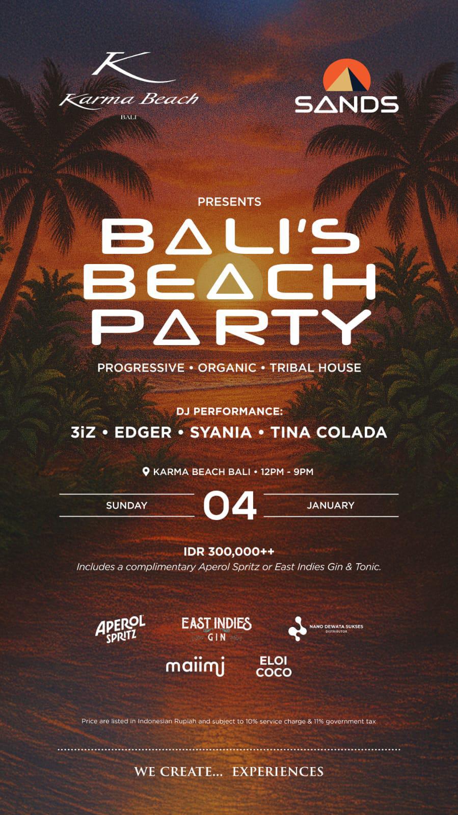 This January, Karma Beach Bali is teaming up with @sands.bali to bring you Bali’s most epic Beach Party. Think: DJs spinning everything from daytime house to sunset grooves, entertainment that’ll have you buzzing from noon ’til moonlight, and killer vibes you won’t find anywhere else.