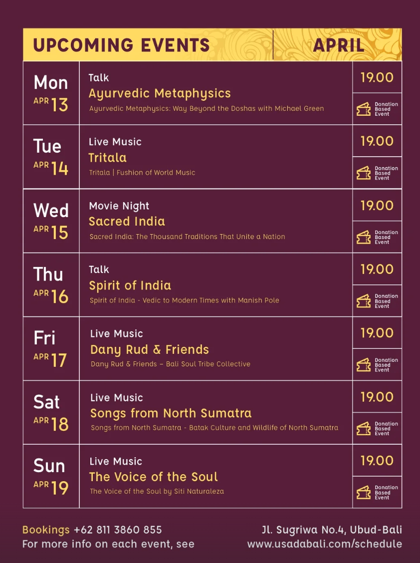Event Schedule at Usada