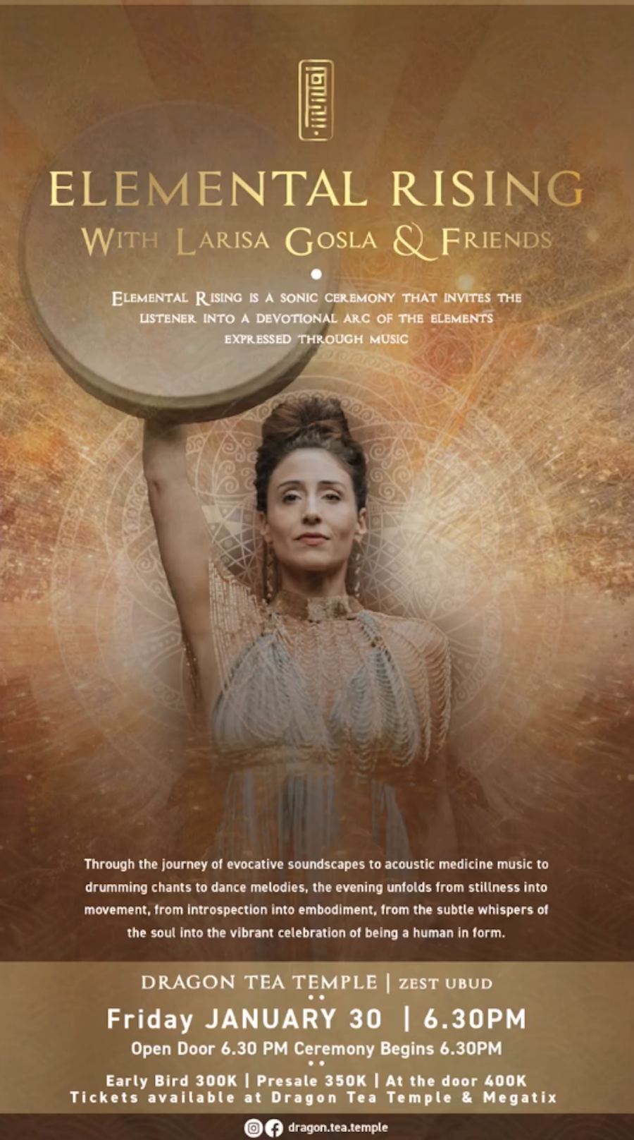 Through the journey of evocative soundscapes to acoustic medicine music to drumming chants to dance melodies, the evening unfolds from stillness into movement, from introspection into embodiment, from the subtle whispers of the soul into the vibrant celebration of being a human in form.